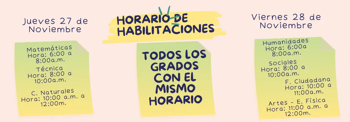 Por novedades administrativas el día 28 de octubre de 2025: Los estudiantes del curso 1102, inician su jornada escolar a las 7:00 a.m.Los estudiantes del curso
